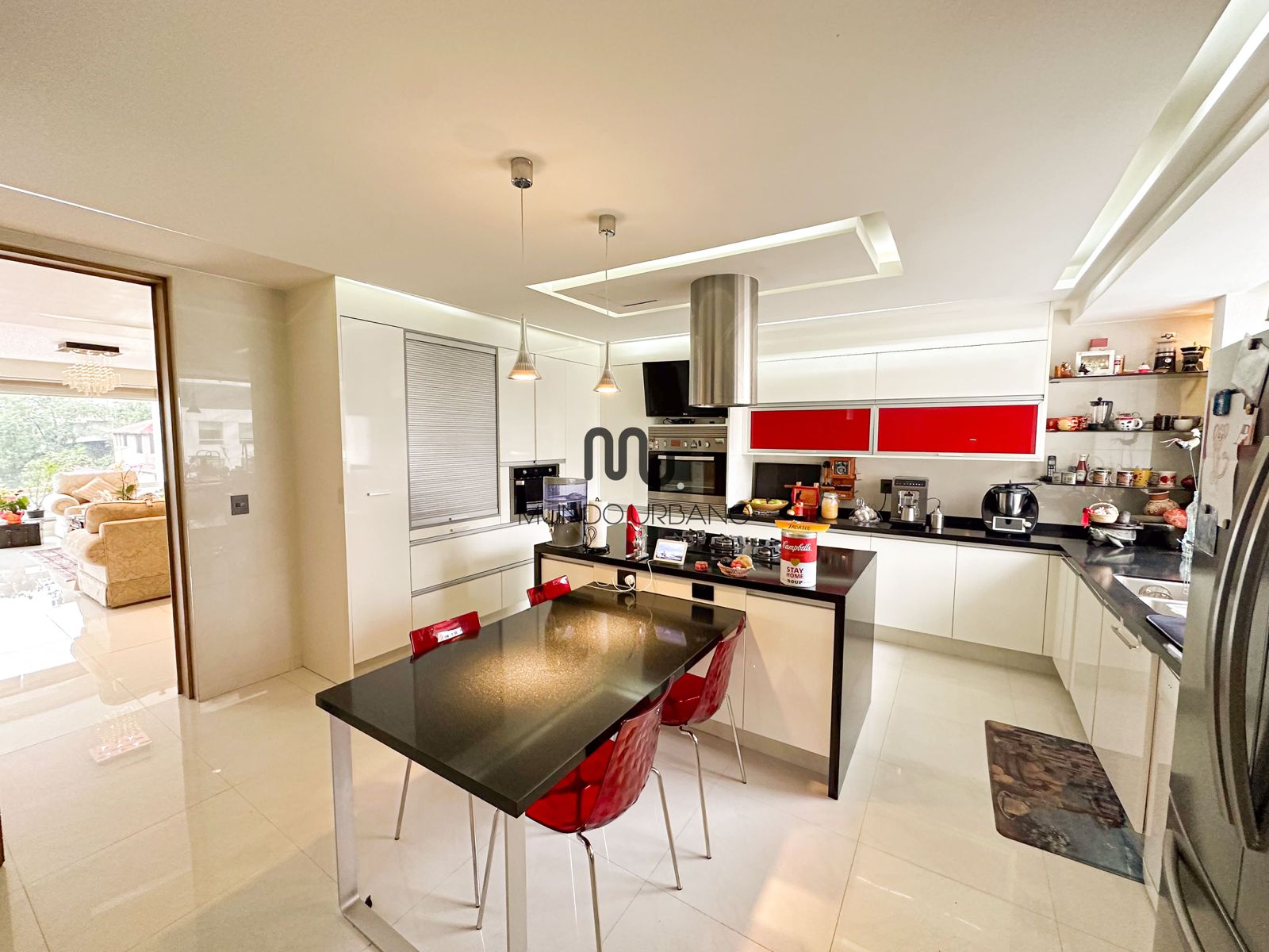 • Cocina cerrada: Integral grande con muchos espacios, con barra, desayunador y electrodoméstico empotrados (enfriador de vinos, etc.)
